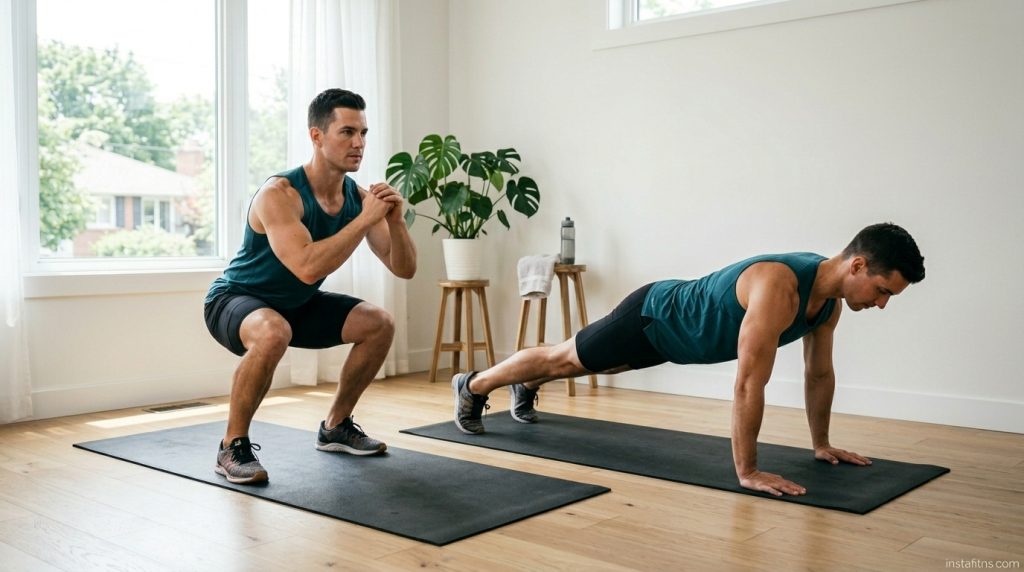 A typical session should include exercises for the legs, upper body, and core. Squats, push-ups, rows, and planks form a solid foundation. These movements not only build strength but also improve coordination and balance.